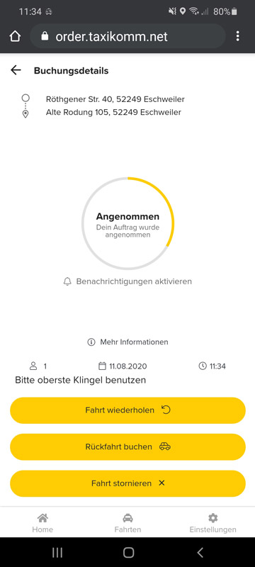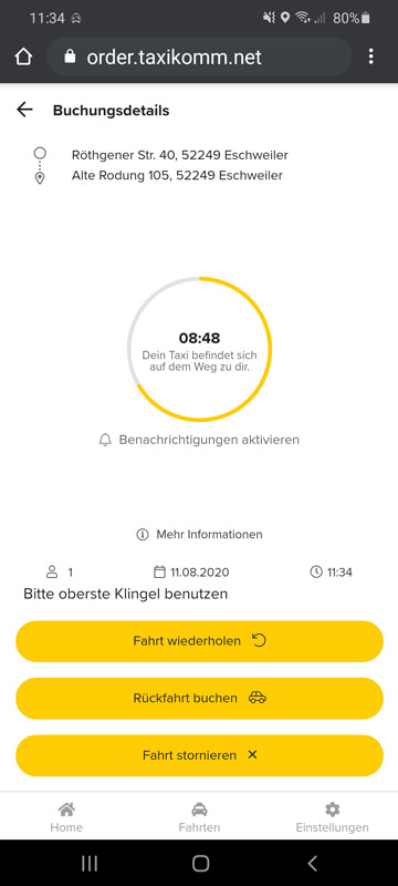 Du weißt jederzeit, wann dein Taxi oder Mietwagen da ist.